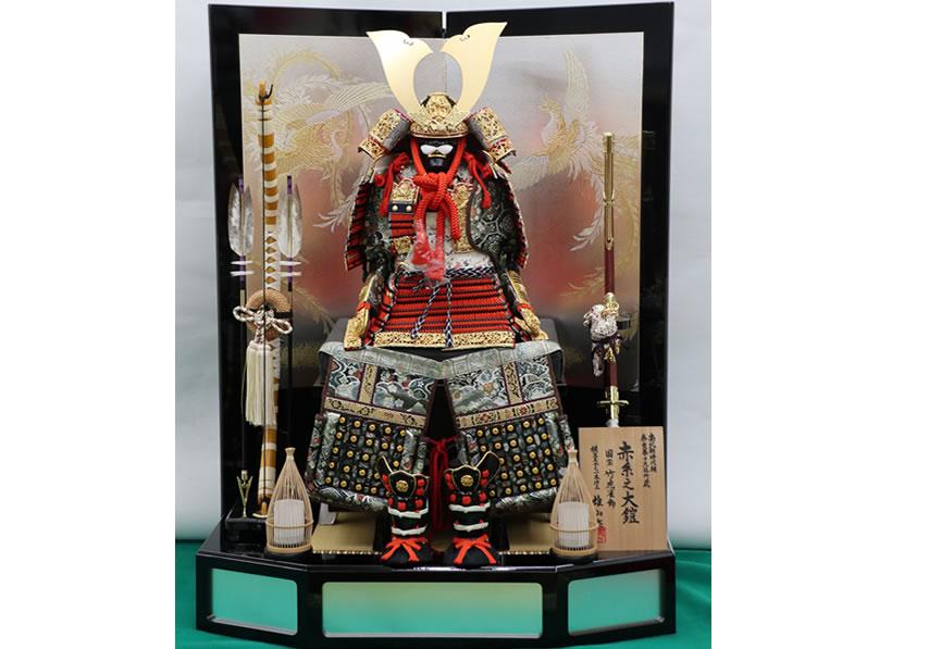 鈴甲子雄山作 8号黒小札朱赤糸威し大鎧平台飾り