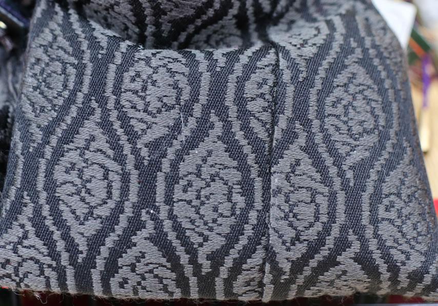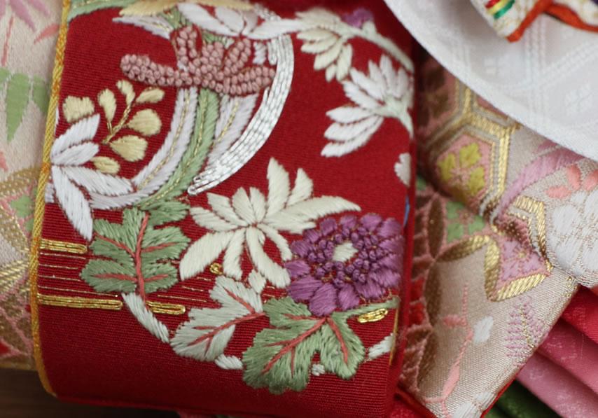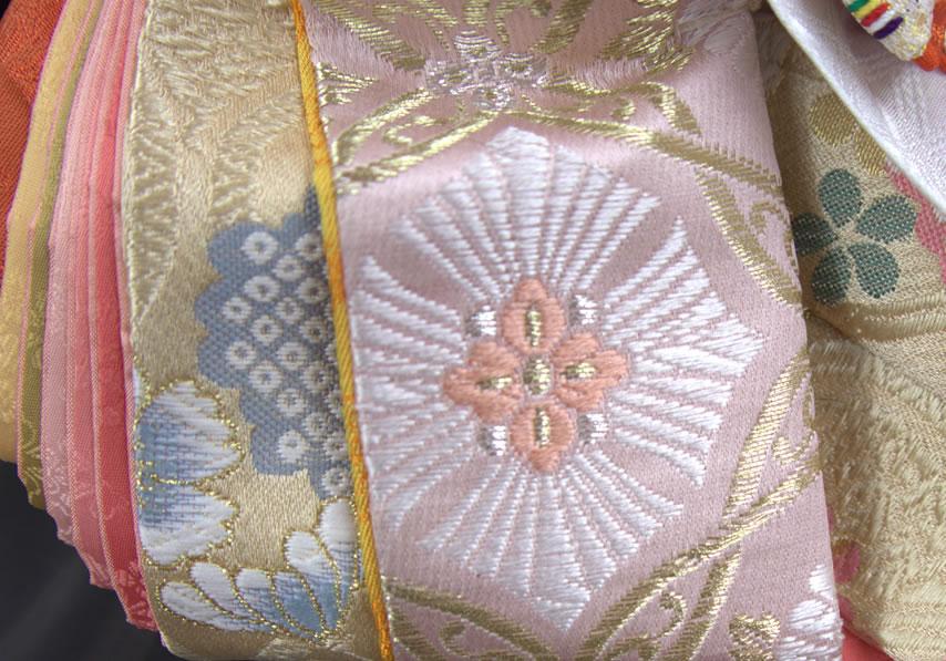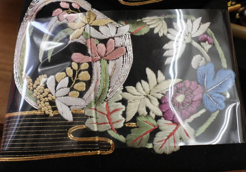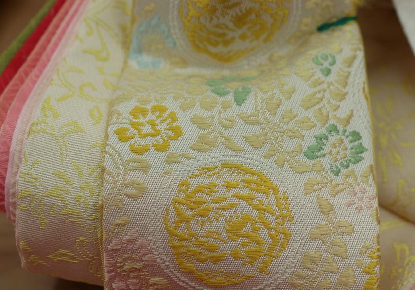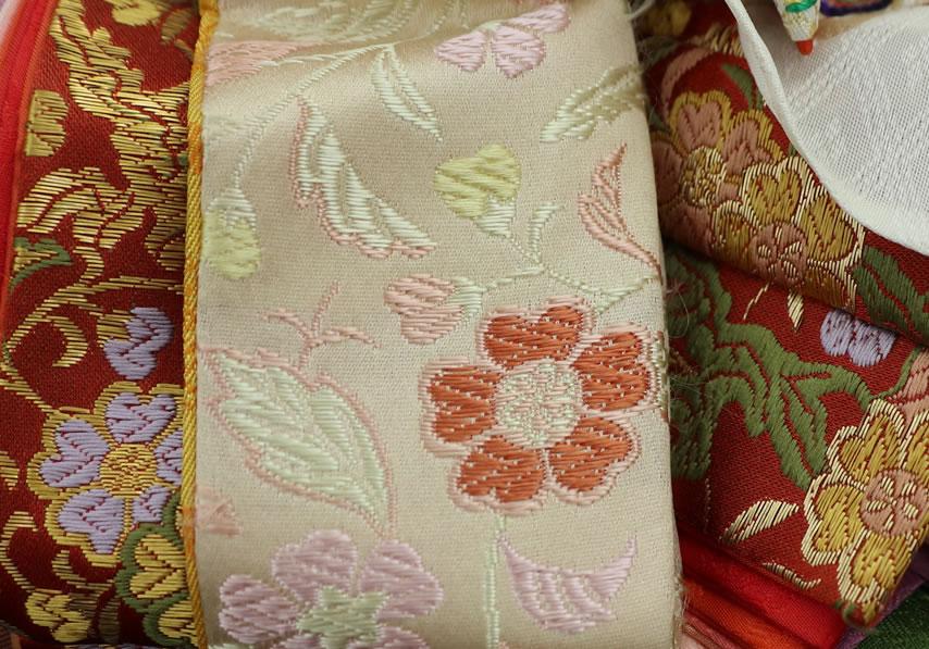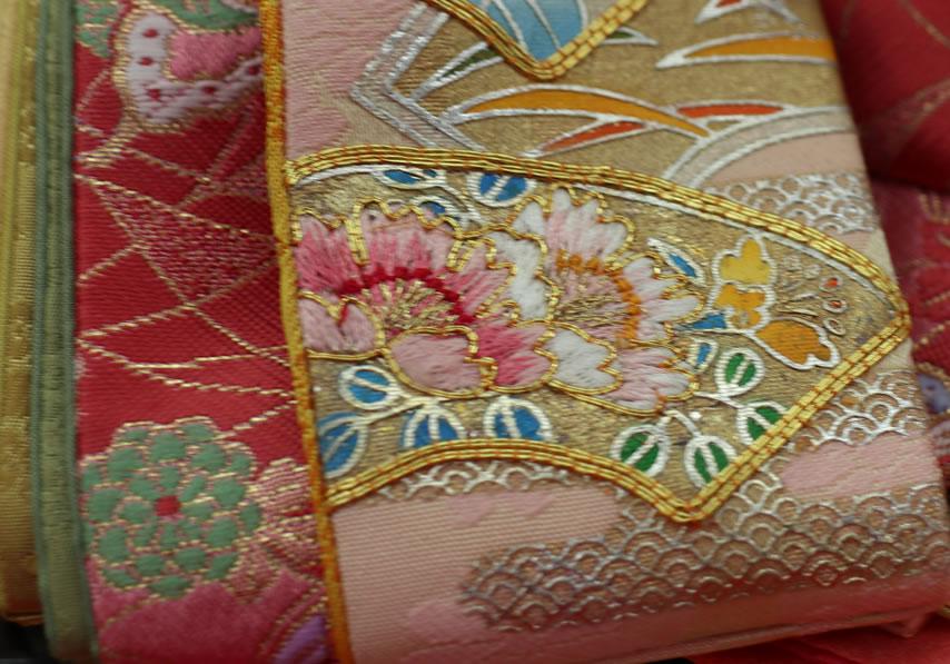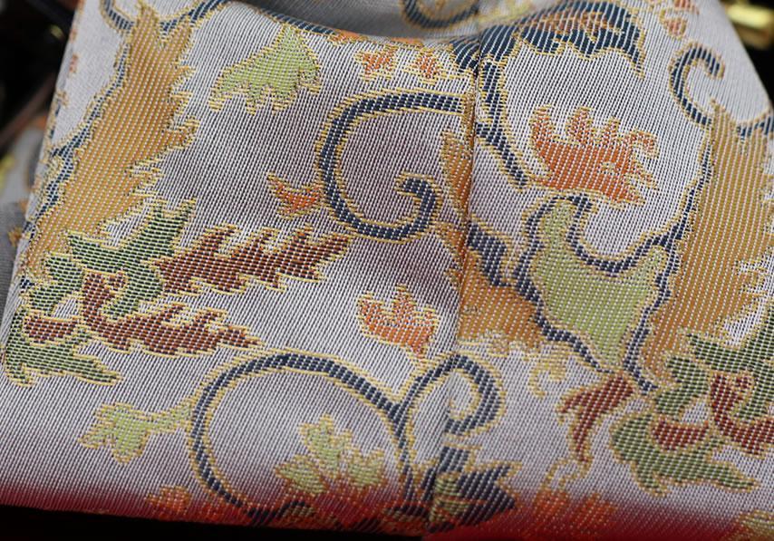 西陣織の唐織袋帯でも、高級なものにこの〆切の技法が多用されています。