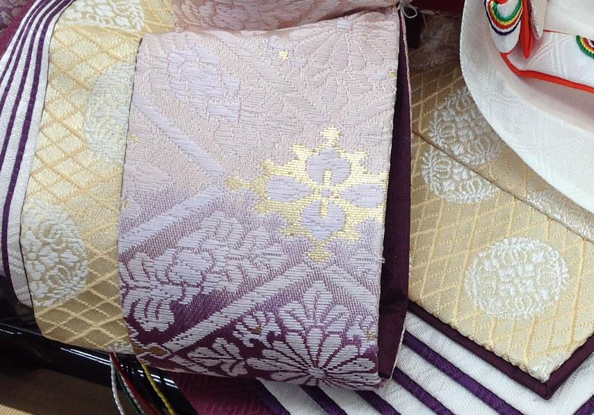 殿は織物の地質だけでなく引糊により、張りに趣向をこらし自然の風合いを公家肖像画に描かれている強装束(こわしょうぞく)の力強い姿が見事に表現されています。