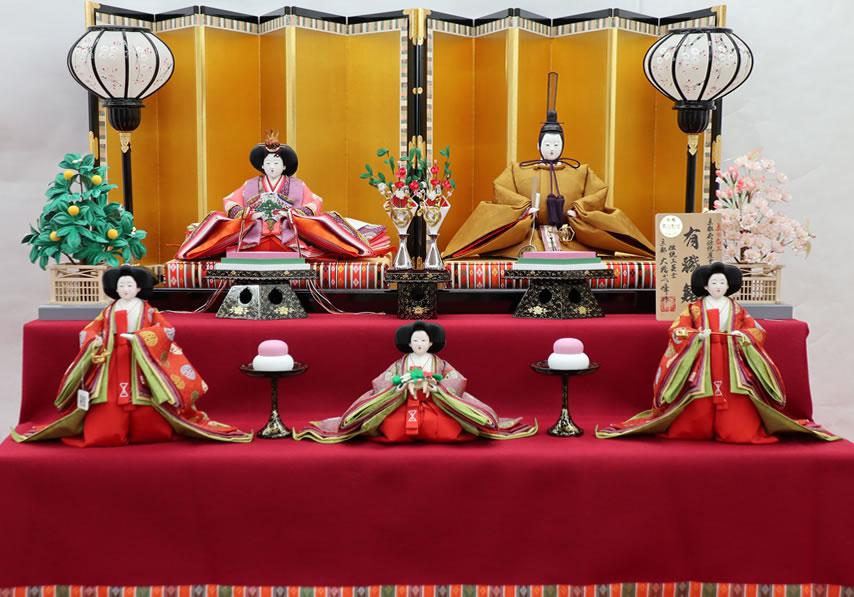 正絹金襴親王官女揃三段飾り